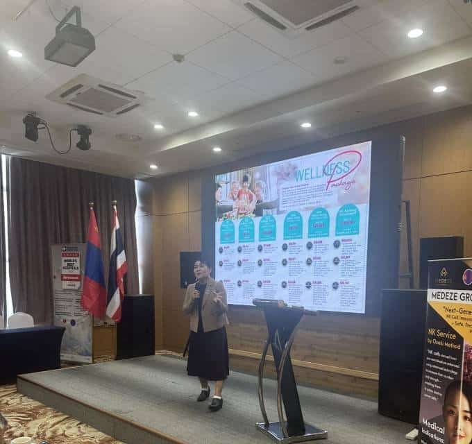 Dr. Veerapol Khemarangsan, Chief Executive Officer and Co-Founder of MEDEZE Group Public Company Limited (MEDEZE), delivered a presentation on the findings of stem cell and NK cell research and its applications—, anti-aging medicine, alternative medicine, aesthetic medicine, NK cell application particularly in cancer treatment and holistic healthcare. The presentation garnered significant interest, leading to an immediate invitation for him to visit a private hospital in Mongolia to foster future collaboration in medical innovation and investment.